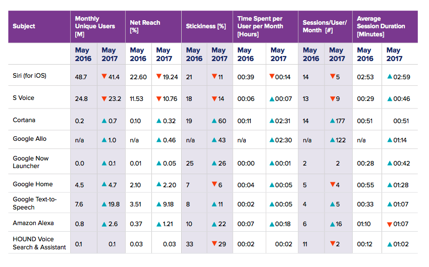 The report says that Microsoft’s Cortana seen a tremendous increment from 0.2 million to 0.7 million monthly active users which is about 350% increase yearly. The stickiness ratings also tripled from 19% to 60%. The report had also showed that Amazon’s Alexa is also a huge gainer and it has an increment from 0.8 million to 2.8 million which is also huge and is about 325% increase in monthly unique users. While the stickiness rating has also doubled from 10% to 22%. Apple’s Siri sits on the top of the number of total users with 41.4 million but it has seen 15% yearly decrease.