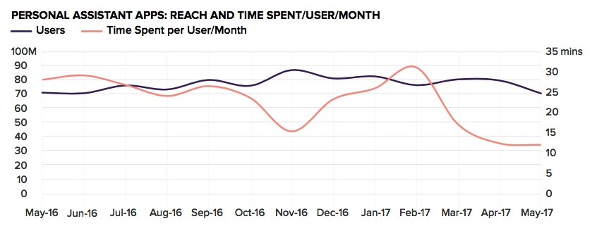 But Verto analytics has also also that the average time of usage of the Digital assistant has seen a decrease from 30 minutes in a month in February 2017 to 18 mins in a month in May 2017. They have also said that usage of Digital assistant app is currently less than 0.1% of the total time users spend in smartphone apps overall.