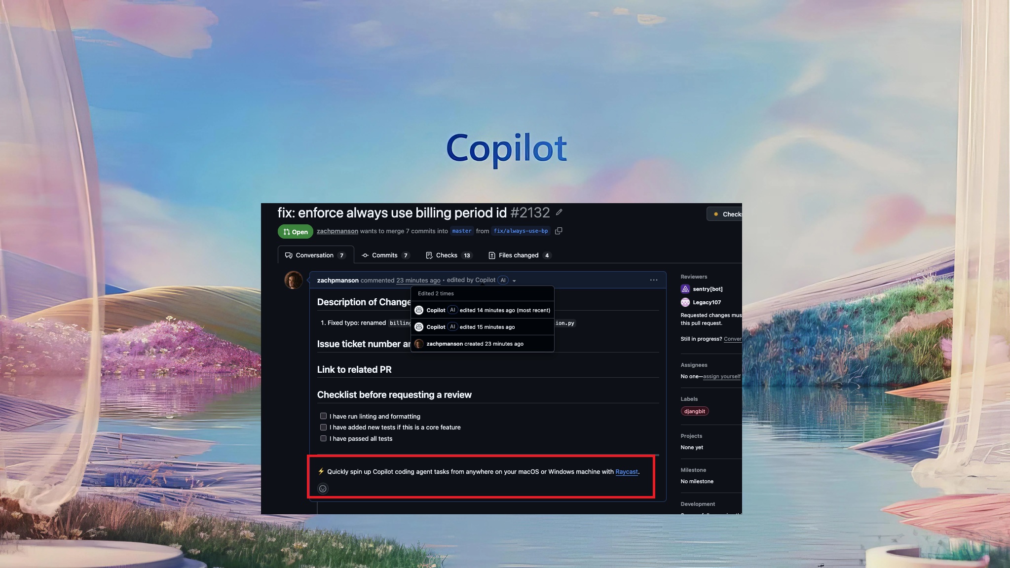 GitHub’s Copilot integration is actually quite helpful, and developers use it frequently, especially if they want to clean up their pull requests. But to Zach’s surprise, GitHub inserted a small ad for Copilot’s agentic features and Raycast, which is a popular third-party search tool on macOS and Windows.