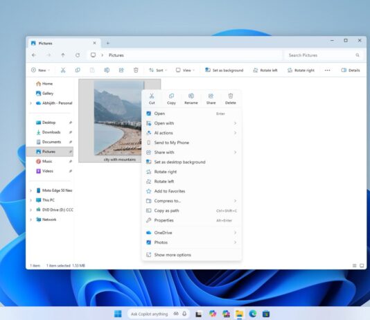 After adding Copilot to Notepad and AI features to apps like Paint and Photos, Microsoft is now bringing it to File Explorer. In Windows 11 Build 26080 or newer, a new...